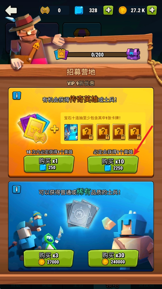 其次就是用宝石进行抽取,抽取10次必得英雄。