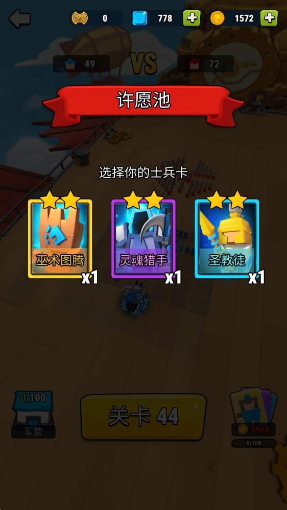 另外就是积累召唤士兵的进度条,等进度条填满后,就能从随机给出的三个英雄里选一个获取。