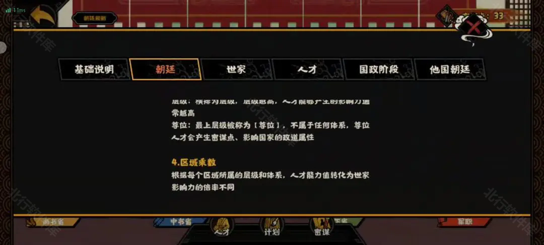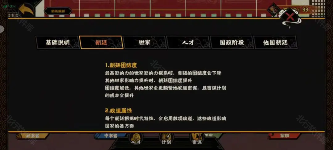 ①操作相对简单,核心就是“踩高捧低”:面对排名第一的世家,重点针对他们家族里那些身居高位、才华出众的成员进行打压;其中性价比最高的手段是低消耗的构陷、弹劾和刺杀——哪怕自家当前影响力排第一,也别顾念情面,一切以完成任务优先(注意:尊位不要轻易罢免,每回合会消耗3点密谋点)