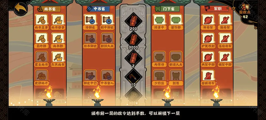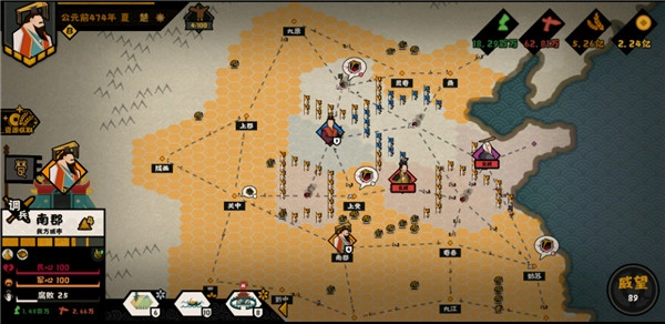 游戏开局会给玩家分配五个军团,需要提升每个军团的人数。小编建议开局不要选择全部军团,否则国家财力会难以支撑。