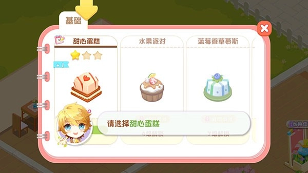 先点击烤箱上蛋糕,选择甜心蛋糕。