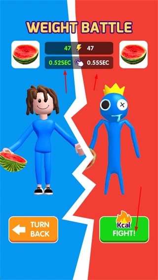 参与WEIGHT BATTLE对战,点击Kcal FIGHT按钮,用积累的卡路里和对手一较高下。