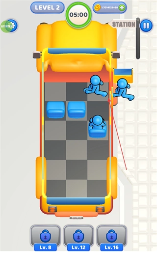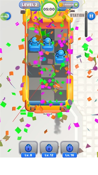动态客流与车辆设计:乘客会分批次、分类型出现,公交车的座位布局也会随关卡推进变化,从简单的双人座到复杂的多排组合,动态设计让每一局挑战都充满新鲜感。