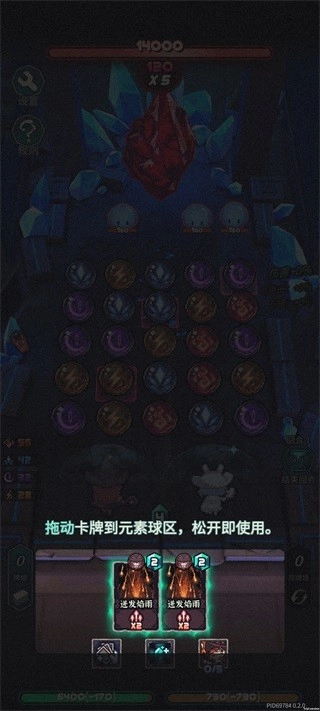 这款游戏的核心玩法是卡牌与三消机制的结合,玩家能够把卡牌拖动至元素球区域,松开手指即可完成卡牌的使用。