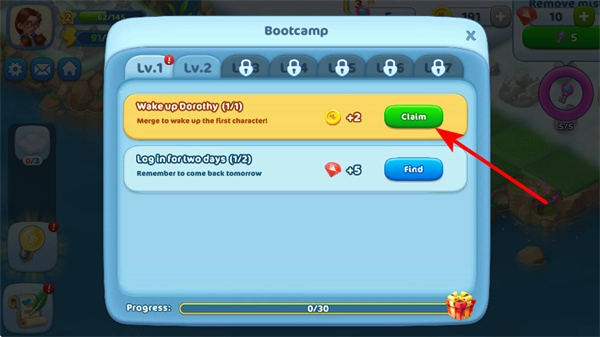 完成任务后点击Claim按钮就能领取奖励,这是积累游戏资源的关键步骤,领取到的奖励可以用来升级建筑或者解锁新角色。