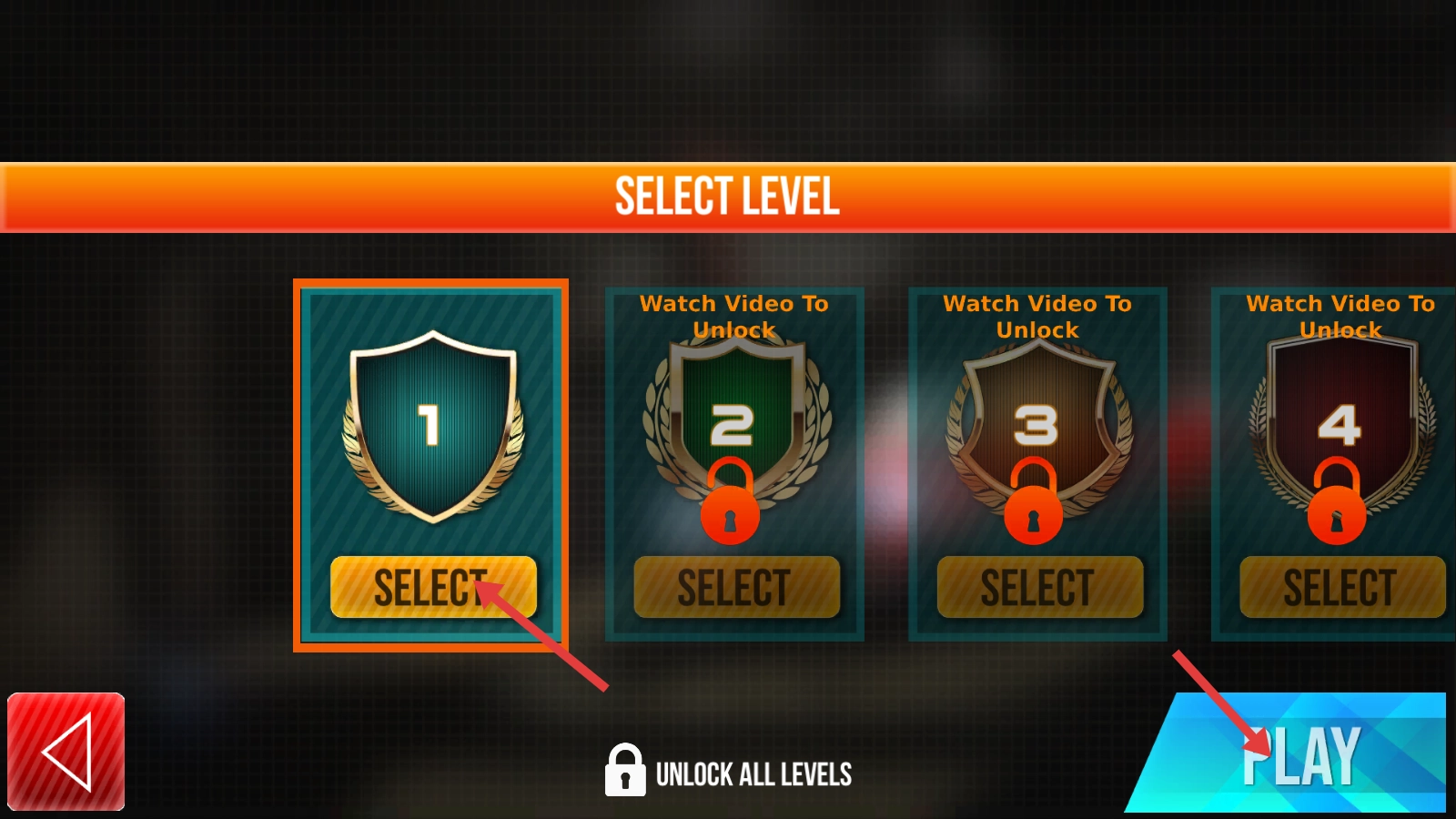 在【SELECT-LEVEL】界面点击【SELECT】选项,选定【等级1】,接着点击【PLAY】按钮,即可开启消防救援游戏的挑战。