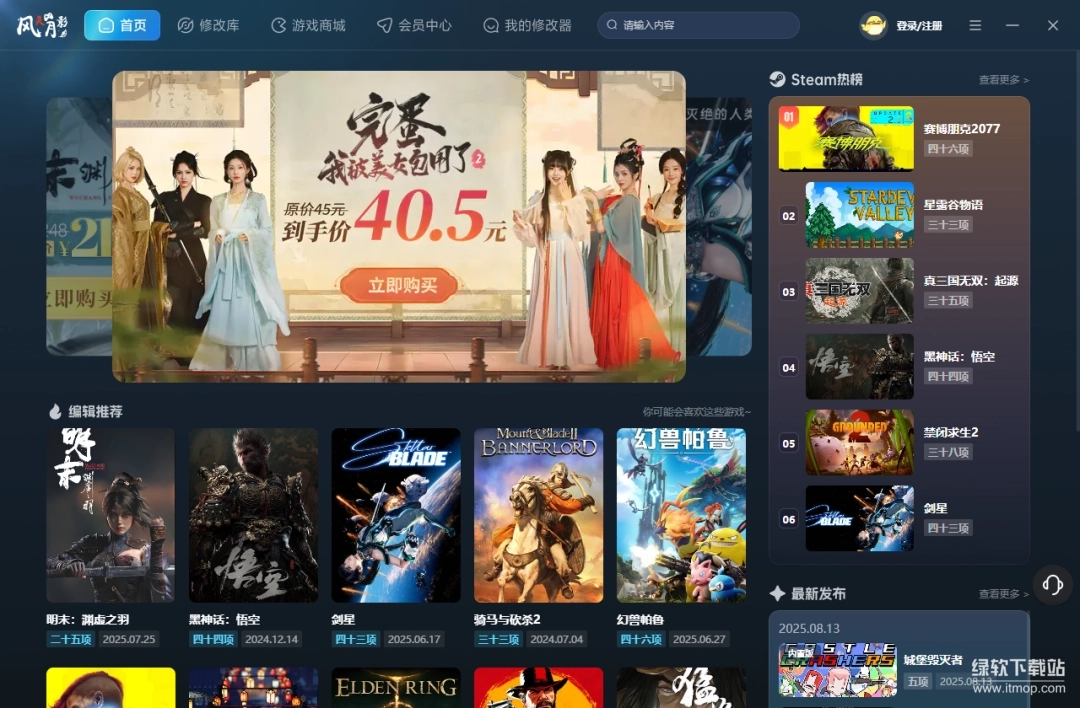 风灵月影是由国内知名游戏修改大师“风灵月影”及其团队精心打造的单机游戏整合平台。这款轻量级工具仅2.59MB,却堪称强大的“资源库”,用户能通过它便捷地获取和管理海量热门单机游戏的专属修改资源。它的核心价值在于助力玩家轻松攻克游戏难关,解锁更多玩法,进而深度体验游戏乐趣。软件配备简体中文界面,且保持高频更新,当前最新版本为v2.0.0.212。