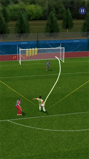 进入关卡后,滑动屏幕即可规划球员的踢球路线,松开手指,球员便会把球踢向设定的位置。