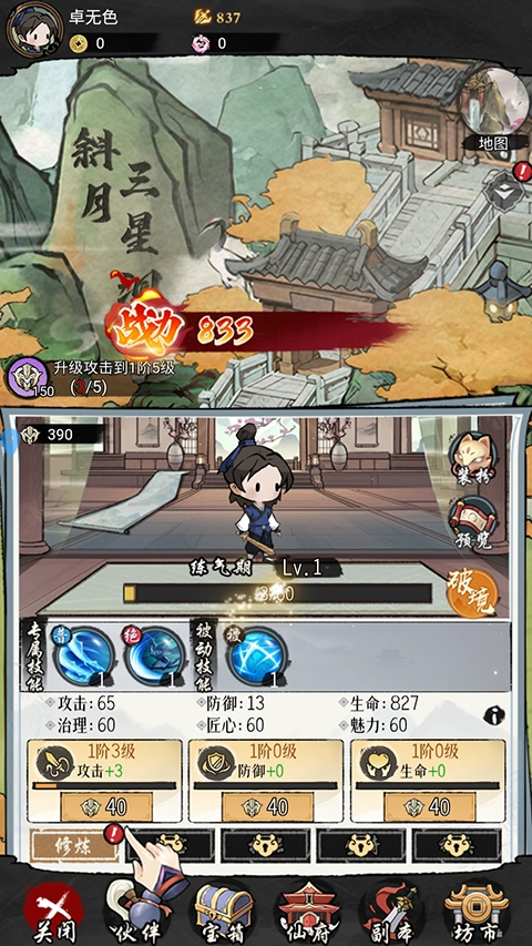 在修炼界面玩家可以对自己的角色进行养成。