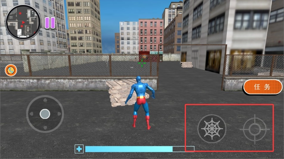 进入游戏后,通过左侧屏幕来控制蜘蛛侠的移动方向,轻触左右区域就能让角色在楼宇之间灵活地穿梭。