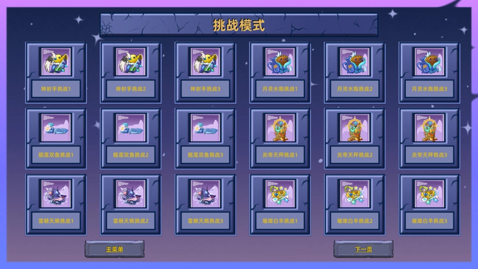挑战模式设有炎帝天秤挑战、雷棘天蝎挑战等特殊关卡,玩家需要借助特定策略来应对强化僵尸以及独特的关卡机制。