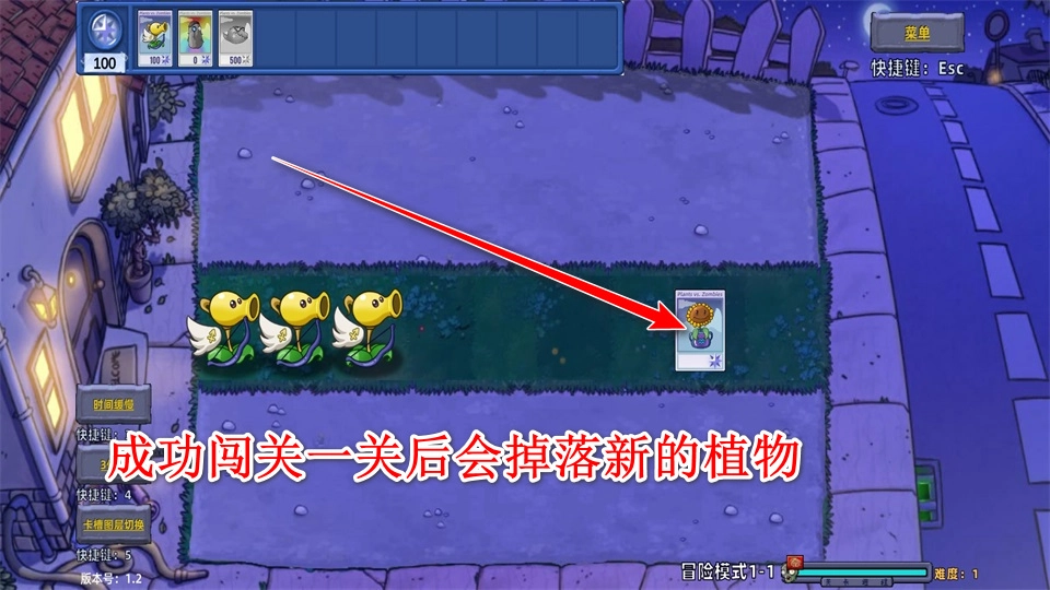 成功闯过一关后会掉落新的植物,到了下一关卡我们就能用上这些新植物了。