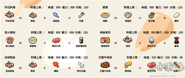 菜品价格由八维图数值直接决定,每种食物都有自身的价格、味道与魅力上限,所以在菜品研发时,优先选择上限较高的菜品,通常能收获事半功倍的成效。