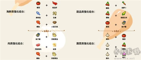 每种菜品依据自身的风味特点与所属品类,都存在最适配的强化食材,这部分内容需要靠日常积累来慢慢摸索,这里仅能列举一些较为通用的例子供大家参考。