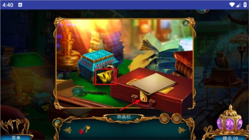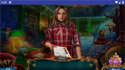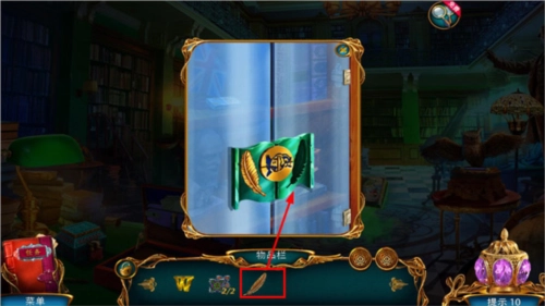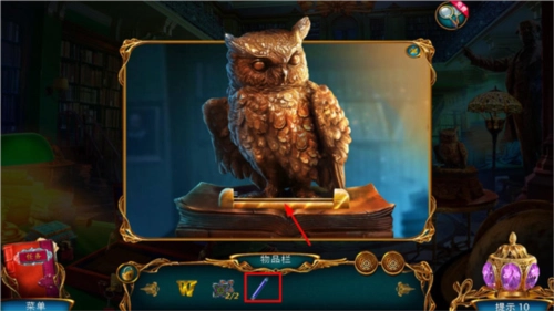 点击悬浮在画面中央的书,会提示点击旁边的猫头鹰来收集拼图嵌块;接着点击左侧被红色布罩住的地球仪,打开后能得到紫外线灯和拼图嵌块。