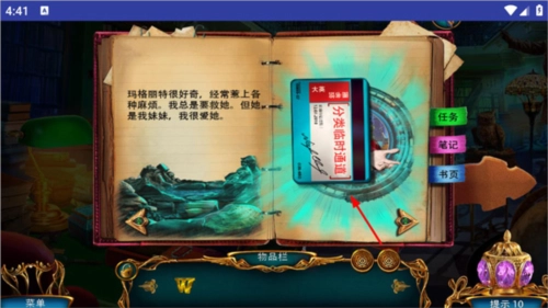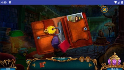 收集完成后,点击桌面上那本带有照片的书,走到桌前,用剪刀剪开树上的锁,接着收集飞出来的纸张,再去拿左边书架上的钥匙,用这把钥匙打开抽屉。