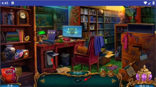 进入新房间后,物品栏变成了一张光盘。在左侧书柜上找到光盘,然后把它塞进主机里。