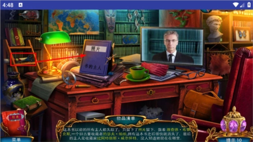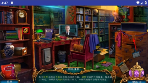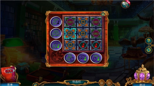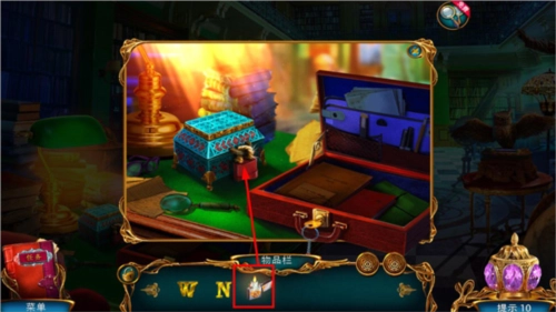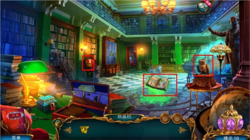 还可以收集后方书架上的地球仪,以及右侧柜子下方散落的锁链,另外要把左边下方的钟放置到左边架子上。