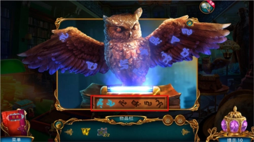 再次点击猫头鹰雕像,让紫外线灯释放出来,接着按照下方符文的提示点击对应的符文,就能获取金属羽毛。