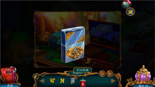 点击远处的橱柜,把金属羽毛放置上去,就能得到N的金属标志,另外还有上方那个空的打火机。