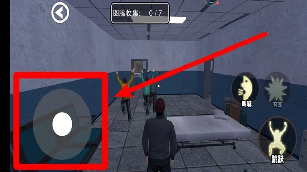画面呈现出角色在病房场景中奔跑的情景,玩家能够借助左下角的摇杆来掌控方向,这种直观的操作方式使得逃脱过程愈发紧张刺激。