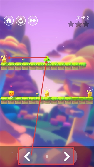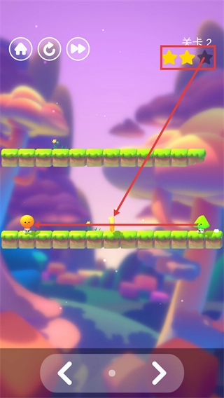 把收集元素和闯关目标相融合,玩家需要在躲避障碍的过程中尽量收集星星,这为关卡增加了额外的探索意义与趣味。