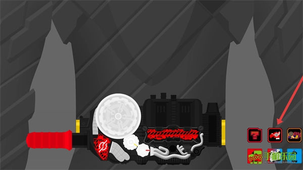 把选中的红色道具安装到腰带装置的对应位置,完成变身组件的初步布置。