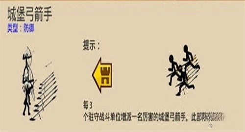 城堡弓箭手:当玩家点击启动城堡防御机制后,该单位便会开始发挥作用,且其行动不受玩家的直接操控。