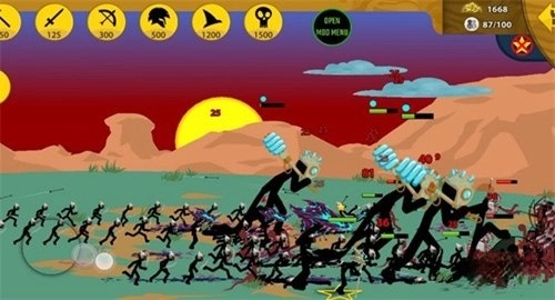 火柴人战争遗产免费版是一款人气颇高的策略战争游戏,作为支持MOD功能的手机横版策略战争类作品,它凭借简约的火柴人美术风格与富有深度的策略玩法,让玩家在部落争斗的世界里感受侵略扩张、势力壮大的畅爽体验。游戏的核心玩法聚焦于资源采集与军队训练的平衡把控,策略性十足,此外丰富的皮肤系统、额外的战役关卡等内容也显著增强了游戏的可玩性,堪称单机策略游戏爱好者不容错过的佳作。