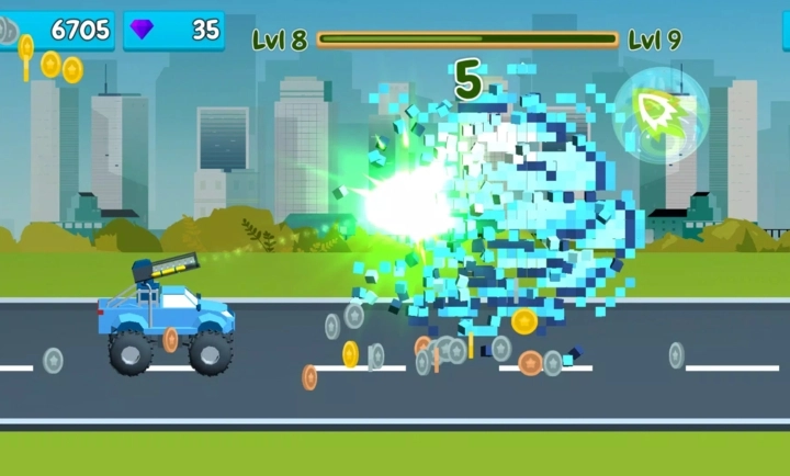 在每一个关卡里,你都会得到一栋配备了特定数量爆炸物的建筑。你的目标是制造更严重的破坏,以此赚取更多的金钱。你所摧毁的每一栋建筑物以及每一辆汽车,都能转化为你的收益。
