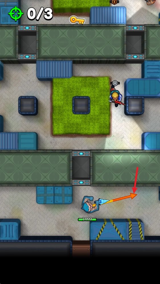 进入游戏后,点击场地便会出现箭头,随后角色就会沿着箭头指示的方向移动。