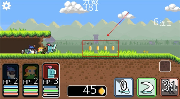 沿路上消灭敌人能获得金币,持续向前移动的途中也会有可拾取的金币。