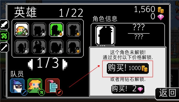 在这里我们可以用之前得到的金币购买并解锁新的英雄。