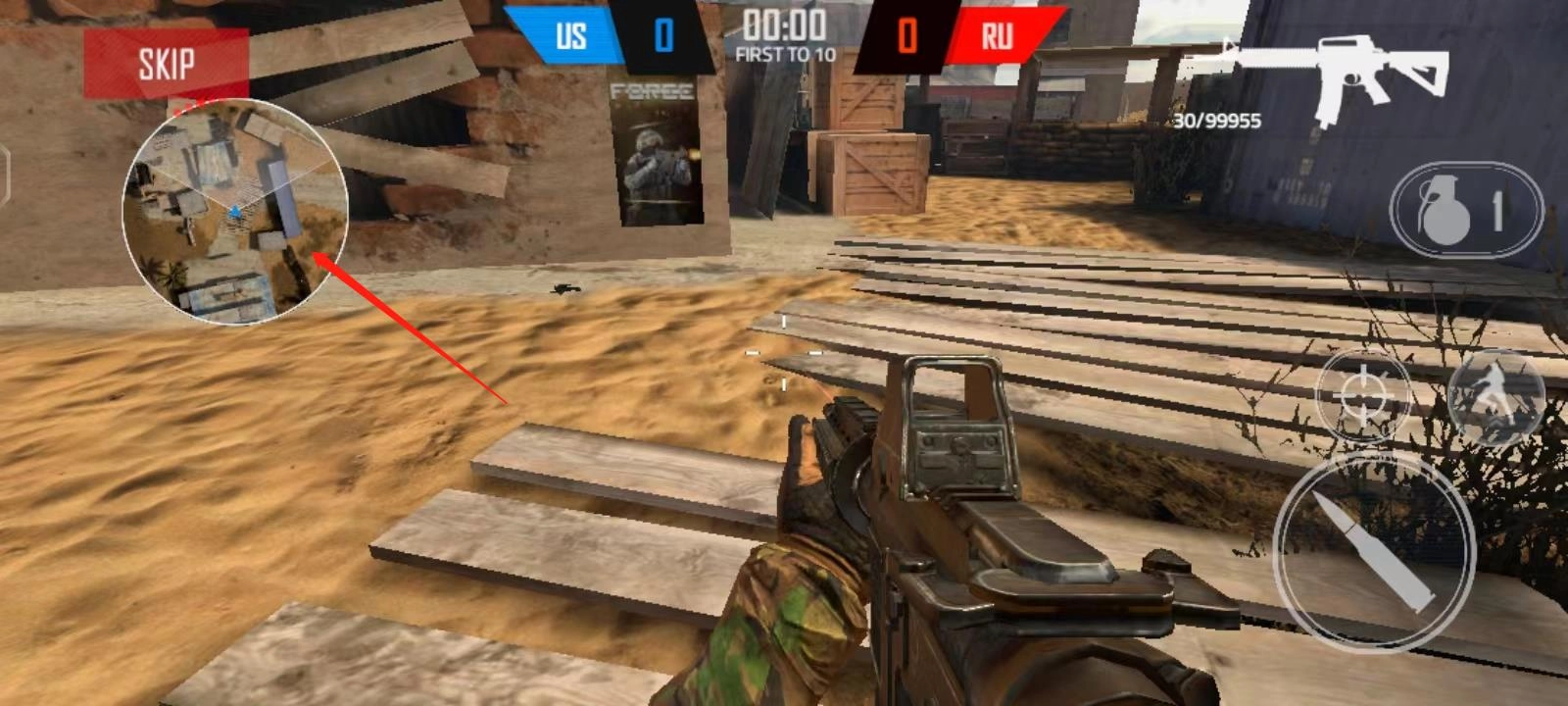 当所有操作都完成后,我们可以查看左侧的地图,上面的红点就指示着敌人所在的方向。