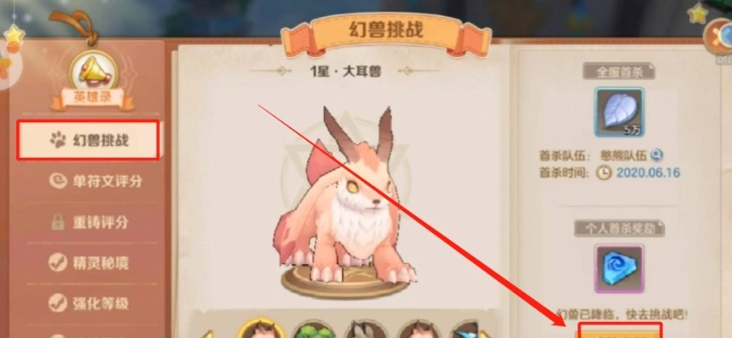 里面点击右下角地幻兽挑战,继续点击前往击杀。