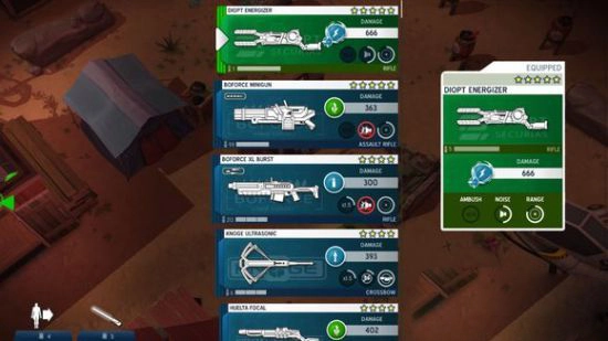 选择装配是战术的关键环节。除了护身服与手榴弹之外,你还能够携带一把双手武器和一把单手武器——每个人都能挑选到适合自己的武器。像散弹枪、手枪、突击步枪、狙击步枪、十字弓、能量武器、飞斧之类的都可供选择。