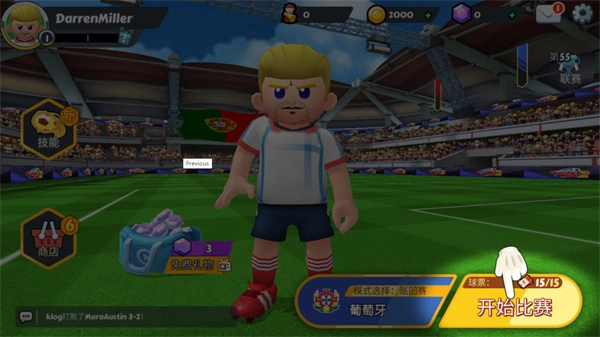 双击打开点球达人2,点击右下角的“开始比赛”按钮来匹配对手。
