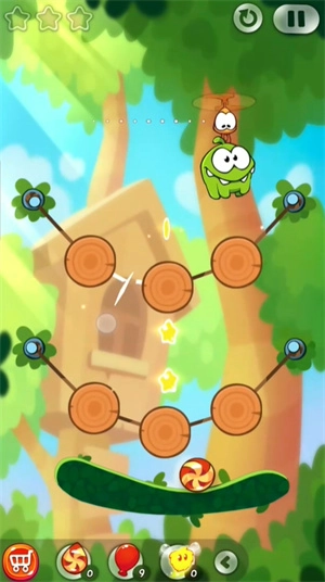 让糖果借助重力与物理引擎的作用,顺利落入小吃货的口中。不过,和前作相比,续作添加了更多互动元素与新道具。比如,游戏新引入了多个角色,每个角色都具备独特技能,这些技能在关卡里发挥着关键作用。另外,游戏还新增了气球、蜘蛛网、弹簧等物理元素,这些元素让关卡设计更具多样性与挑战性。
