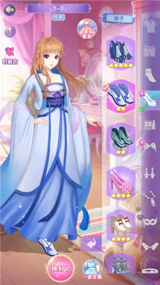 为角色从头到脚完成全套搭配后,点击屏幕下方的“换好了”按钮,提交你的装扮成果。