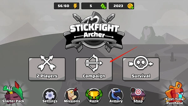 游戏安装完成后,启动游戏,点击界面中间的“campaign”闯关模式即可开始游戏。