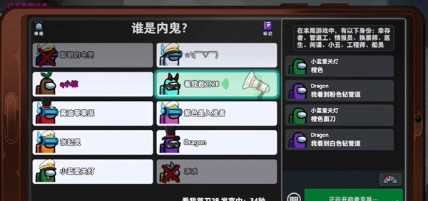 身份觉醒-捣蛋鬼:若有人报告了曾被捣蛋过的阵亡玩家,那么在会议期间,该报告者将无法进行发言或打字操作。