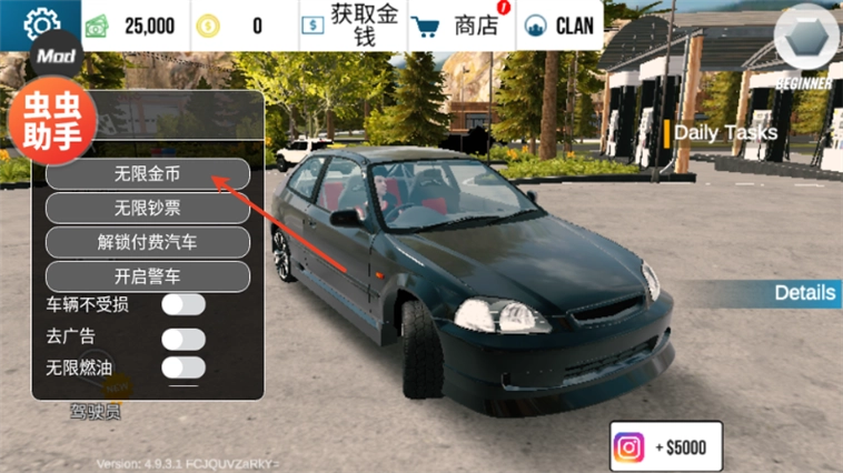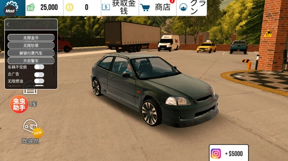 安装好手动挡停车游戏并运行后,能看到解锁付费汽车等功能都是具备的。
