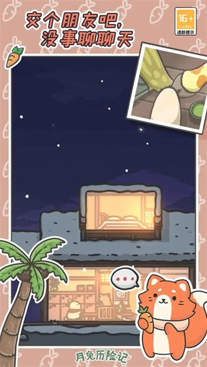 另外,《月兔历险记》的游戏难度本身不高,但需要玩家有耐心地收集物资、达成所有成就才能通关。这是一款开放式游戏,玩家主要在自己的游戏圈子里慢慢培养角色、收集资源,和其他玩家的互动极少,通常只限于添加好友和聊天,无法进行面对面的交互。