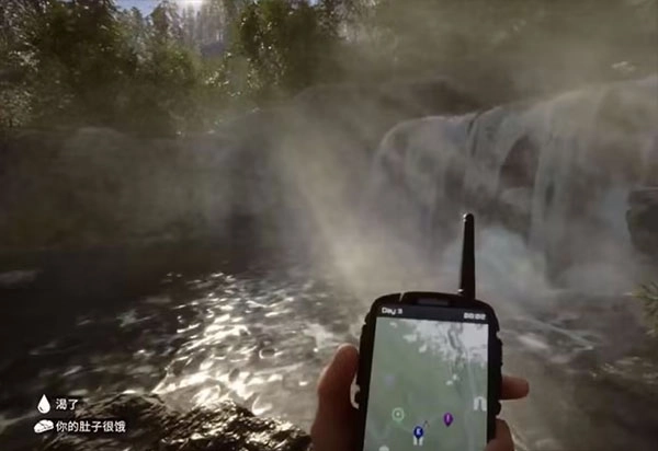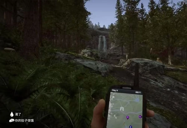 前往女野人可能刷新的第一个地点:也就是图中展示的瀑布附近,要是这里没找到她,我们就接着去下一个位置。