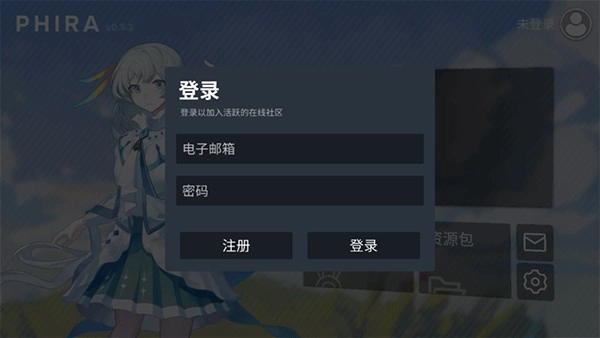 打开PHIGROS自制谱游戏,进入主界面后,点击右上角的人像图标。