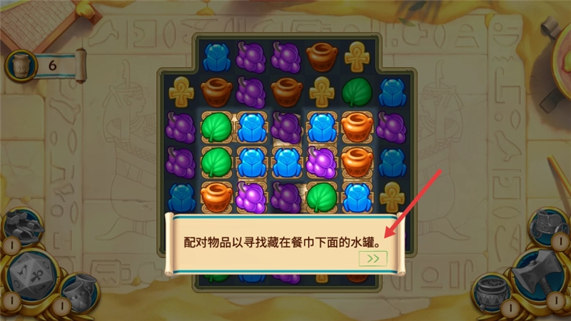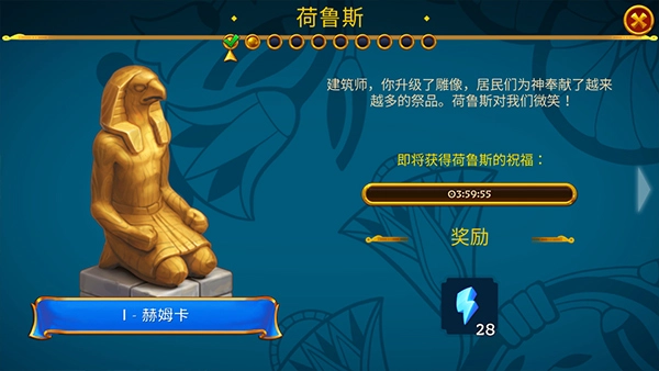 按照埃及人民的需求推进任务,通过玩消除类游戏来获取用于建设的资源