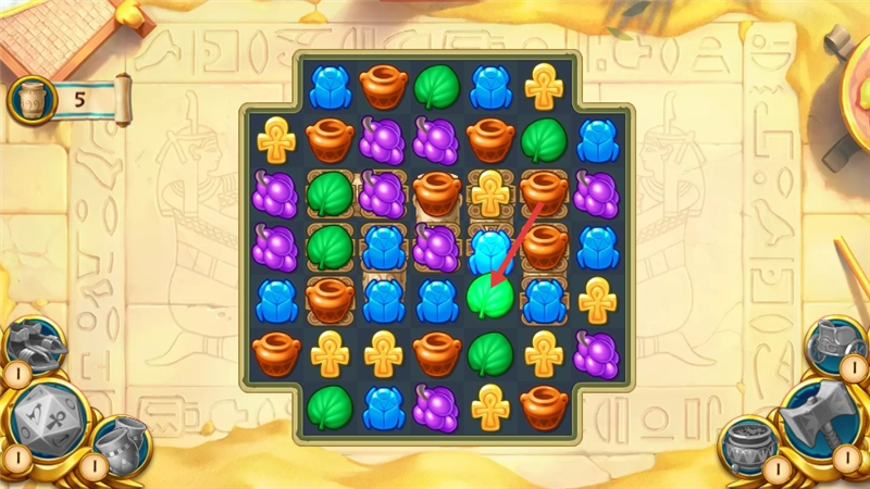 特色道具来助力:这里有丰富的埃及主题道具,比如能召唤沙尘暴重置珠宝布局的“神谕沙漏”,还有能瞬间消除同色珠宝的“法老权杖”等等。只要合理搭配这些道具,就能轻松攻克高难度关卡,让游戏的趣味性和策略性都得到提升。