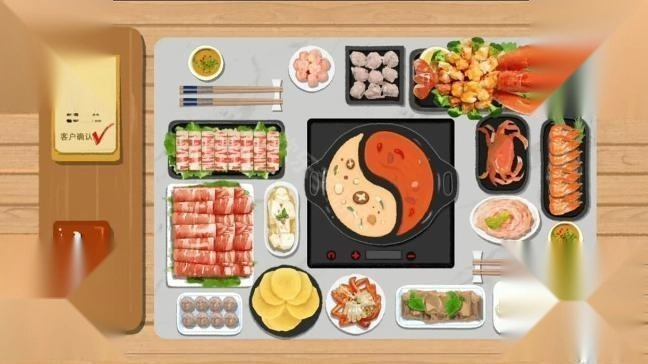 豪华火锅(葱和辣椒要放进左上的调料碟中)。