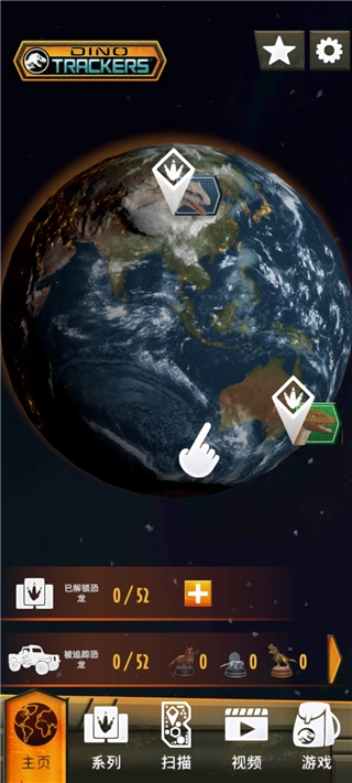 在本站安装好《侏罗纪世界真相》后,进入游戏主页会看到地球界面,上面有恐龙图标可供点击。