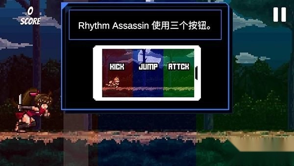 核心操作划分为左(KICK踢腿)、中(JUMP跳跃)、右(ATTACK攻击)三个区域,玩家要精准跟随背景音乐的节拍按下对应的按键。攻击、跳跃、踢腿都得卡在节奏点上完成,按得太早或者太晚都会让动作失去效果,甚至使角色受到伤害,“节奏感”由此成为了生存的核心能力。
